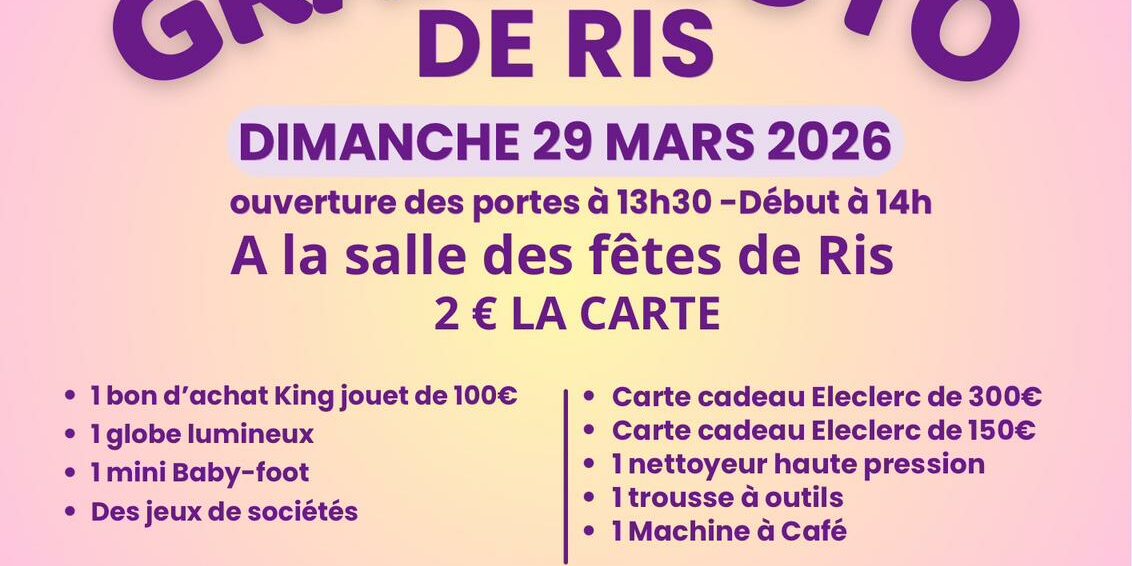29/03 Les amis de l’école laïque de Ris : Grand loto